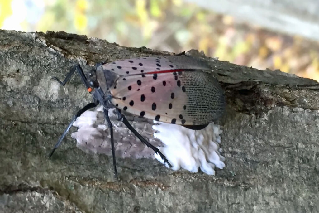 The Spotted Lanternfly (SLF) Lycorma delicatula is native to China and was first detected in Pennsylvania in September 2014. Spotted lanternfly feeds on a wide range of fruit, ornamental and woody trees, with tree-of-heaven being one of the preferred hosts. Spotted lanternflies are invasive and can be spread long distances by people who move infested material or items containing egg masses. If allowed to spread in the United States, this pest could seriously impact the country’s grape, orchard, and logging industries. ~USDA APHIS